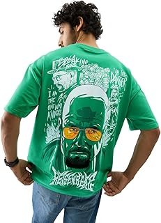 Breaking Bad: Heisenberg Men and Boys Short Sleeve Round Neck Green Graphic Printed Cotton Oversized T-Shirts