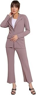 Co-ord Set for Women|Collared Neck Co-ord Set for Women| Blazer and Trouser|Solid Co-ord Set|Coat and Pant|2 Piece|Formal Co-ord Set for Women| Lycra Co-ord Set