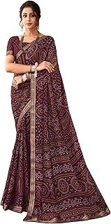 Fashion Women’s Chiffon Fancy Bandhani Printed Saree With Blouse Piece, Saree for Women, Sarees for Wedding (25802, Unstitched Blouse Piece)