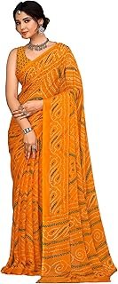 Fashion Women’s Chiffon Fancy Bandhej Printed Saree With Blouse Piece, Saree for Women, Sarees for Wedding (26502, Unstitched Blouse Piece)
