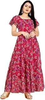 Flower Digital Printed One Piece Long Kurti Gown for Women | Georgette Fabric with Heavy American Crepe Lining | Square Neck & Stylish Short Sleeves