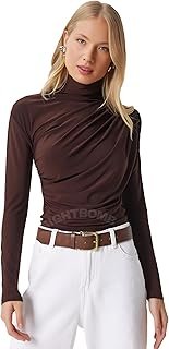 HomeWomen Top Gathered Ruched FRONTFLOW Ultra Soft Microfiber SOFTLINE Cuddle TEE Fullsleeve TOP for Women