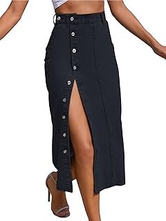 Girl’s & Women’s Front Button-Up Slit Longline Single Breasted Long Casual Denim Skirt Suitable for Daily WearSkirt 233