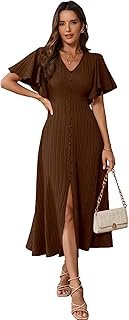 HomeWestern Dress Girl’s & Women’s Pleated Midi Dress with Flutter Sleeves | V-Neck Western Dress for Women | Elegant A-Line Summer Outfit | Office & Casual Wear (Dress 244)