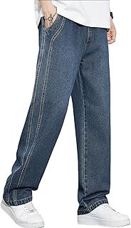 Jeans for Men | Loose Fit Light Wash Denim Pants with Wide Leg Streetwear Style (U13-14)