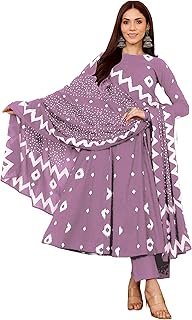 | Rayon Anarkali Printed Kurta with Pant & Dupatta | Cotton Kurta Set for Women | Stylish Co-Ord Set with Dupatta Ethnic Dress for Women