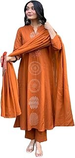 | Rayon Embroidery Straight Kurta Pant Dupatta Set | Stylish Kurti Set for Women | Cotton Kurta Set with Dupatta Ethnic Dress | Festive Kurta Set