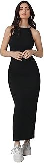 HomeWomen Top Solid Halter Neck Solid Bodycon Midi Dress for Women’s & Girl’s