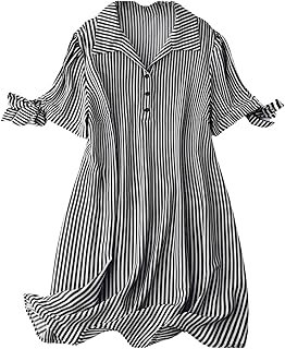 HomeWomen Top Striped Shirt Style Mini Dress for Women | Collared Casual A-Line | Tunic with Tie Sleeves & Front Buttons
