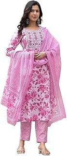 Women Embroidery Straight Floral Printed Kurta and Pant Set with Dupatta