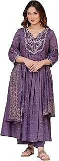 HomeWomen Ethnic Sets Women’s 100% Pure Cotton Anarkali Kurta Set with Pant & Dupatta | Embroidered Flared Kurta | Elegant Ethnic Suit for Festive