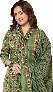 Women’s Cotton Printed Kurta Set with Pants & Dupatta – 3/4 Sleeve | Elegant Ethnic Wear
