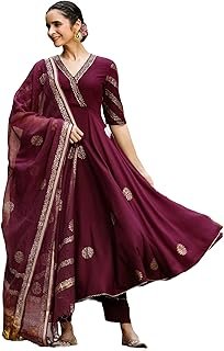 Women’s Elegant Wine Anarkali Kurta Set with Dupatta | Printed Traditional Soft Rayon Fabric