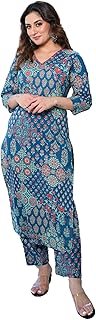 HomeWomen Ethnic Sets Women’s Pure Cotton Printed Kurta Set with Pants | Ethnic Indian Wear | 3/4 Sleeves | Summer Outfit