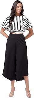 HomeWomen Top Women’s Black Culottes with White Striped Crop Top | Crepe Co-Ord Set for Women | Stylish Modern Pant Suit for Women | Trendy Party, Casual & Summer Outfit