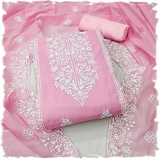 HomeDress Material Women’s Cotton Chanderi Embroidery Work Unstitched Salwar Suit Dress Material With Chanderi Work Dupatta (DM Panel_Free Size)