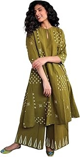 HomeWomen Ethnic Sets Women’s Cotton Kurta Palazzo Set | A-Line Flared Kurta Set for Women | Bandhani Block Print Suit Set | Kurta Sets for Woman