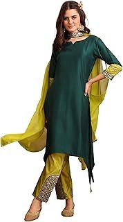 Women’s Cotton Silk Embroidered Asymmetric Kurta Pant with Choker Dupatta Set