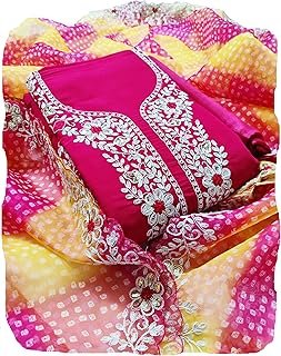 Be the first to review “Women’s Cotton Silk Embroidery Work Unstitched Salwar Suit Dress Material With Organza Printed Dupatta(Free Size)”