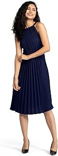 Women’s Elegant Belted Pleated Sleeveess Short Dress Color