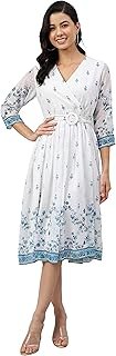 HomeWestern Dress Women’s Fit and Flare Midi Georgette Digital Print Flared Western Dress