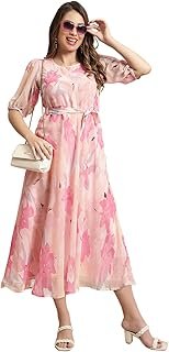 HomeWestern Dress Women’s Georgette Maxi Dress| Digital Print Floral Printed Western Ethnic Gown |Maxi Dress Casual Wear