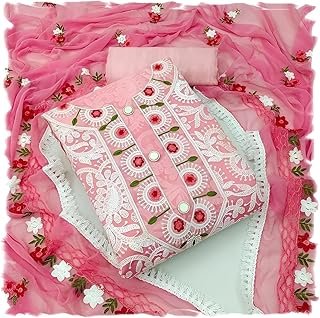 Women’s Heavy Chanderi Cotton Embroidery Work Unstitched Salwar Suit Dress Material With Nazmin Work Dupatta (Free Size)