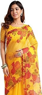 HomeCotton Saree Women’s Kota Doria Floral Printed Saree with Blouse Piece