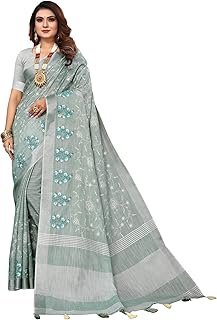 Be the first to review “Women’s Linen Cotton Embroidery Work Saree with Blouse Piece”