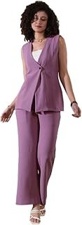 HomeWomen Top Womens Lycra Solid Co-Ords Set|Sleeveless V-Neck Top & Trouser 2 Piece Co-Ord Set