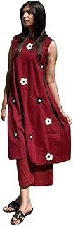Women’s Maroon Sleeveless Cotton Kurta Set with Floral Embroidery | Ethnic Wear for Office, Casual & Summer | Comfortable