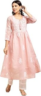 HomeDress Material Women’s Muga Cotton Flared Lucknowi Chikankari Ethnic Wear Kurta