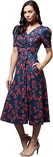 Be the first to review “Women’s Multicolored-Base-Blue V-Neck Pleated Puff Sleeve Floral Wrap Midi Polyester Dress” Cancel reply