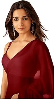 Women’s Plain Pure Georgette Saree With Unstitched Blouse Piece (Rocky Aur Rani Ki Prem Kahani Alia Bhatt Saree)