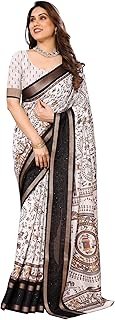 Be the first to review “Women’s Printed Dola Silk Sequence Boarder Warli Art Saree With Unstitched Blouse Piece (Warli Sequence)”