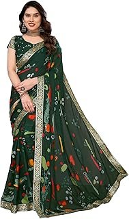 Women’s Printed Georgette Saree With Lace Border and Unstitched Blouse Material