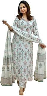HomeDress Material Women’s Printed V Neck Kurta and Pant Set with Dupatta