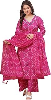 HomeDress Material Women’s Pure Cotton Bandhani Printed Kurta with Palazzo & Dupatta