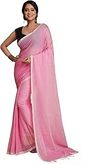 HomeCotton Saree Women’s Pure Mulmul Cotton Plain Saree With Tassels (Pink).