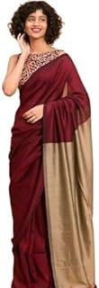 HomeCotton Saree Women’s Pure Premium Cotton Saree With Blouse Piece (Maroon & Golden)