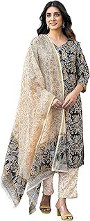 Women’s Rayon Blend Floral Printed Straight Kurta Pant with Dupatta Set