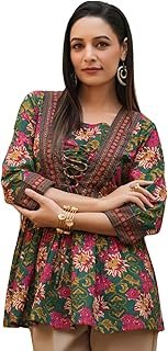 HomeWomen Top Women’s Rayon Paisley Printed Tunic Western Tops Short Kurti – Comfortable Everyday Wear & Half Sleeves, Collar Neck (Available in Plus Size and Combo Pack of 2)