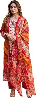 Women’s Rayon Viscose Straight Printed Kurta with Pant & Dupatta