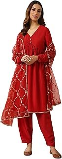 Be the first to review “Women’s Red Silk Blend Nayra Cut Kurta with Pant and Dupatta” Cancel reply