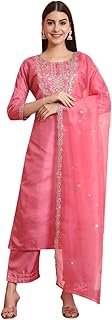 Women’s Silk Blend Embroidered Kurta with Pant & Dupatta Set