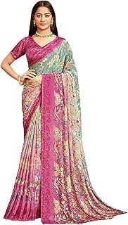 Women’s Silk Crepe Floral Printed Saree with Unstitched Blouse Piece