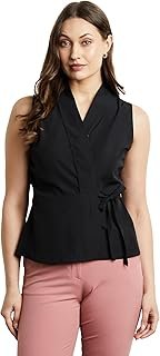 HomeWomen Top Women’s Solid Sleeveless Wrap Top (Regular Fit | Desk-to-Dinner)