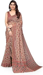 Women’s Stylish Cotton Blend Ajrak Digital Printed Saree with Blouse Piece
