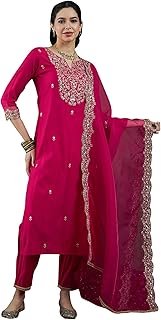 Women’s Viscose Embroidered Straight Kurta & Pant with Dupatta Set, Kurta Set
