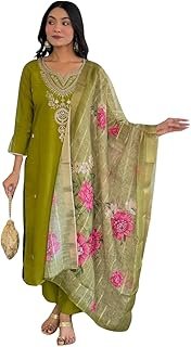 Women’s Viscose Embroidered Straight Kurta with Pant and Dupatta Sets (Available in Plus Size) (NX-692)